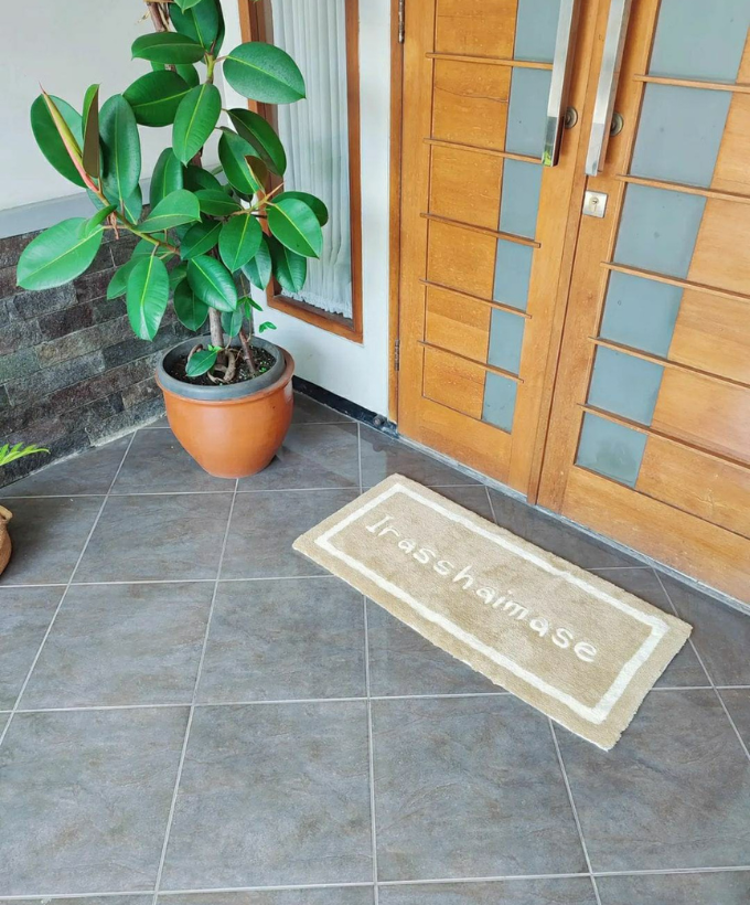 Bisa custom warna, ukuran dan tulisan juga lho… Ini penting banget, biar kita punya keset yang unik, beda dari yang lain.
